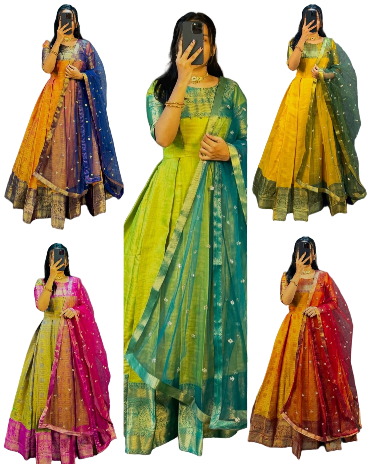 Gown Colour: Maroon, Pista Green, Dark Orange, Lemon Green, Yellow