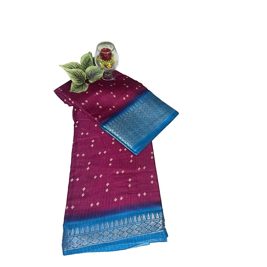 A beautiful Traditional Bandhani Inspired Design with delicate Diamond Motifs Spread Evenly across the body. and the saree is highlighted by an Elegant Contrasting Woven Border and pallu. giving it a graceful ethinc appeal. Saree Length 5.5 Mtrs. Blouse piece : 80CM .