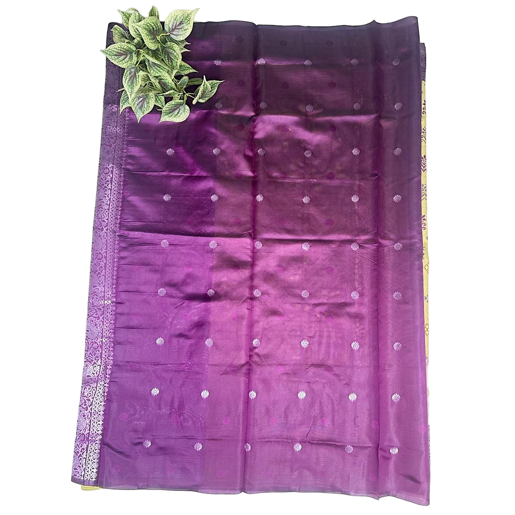 Design and Pattern : Features Small all - Over Motifs with traditional hand - block prints. Border:Dark Blue Running along the edges with a Different, intricate woven pattern. Saree Length 5.5 mtrs, Blouse piece:1cm.