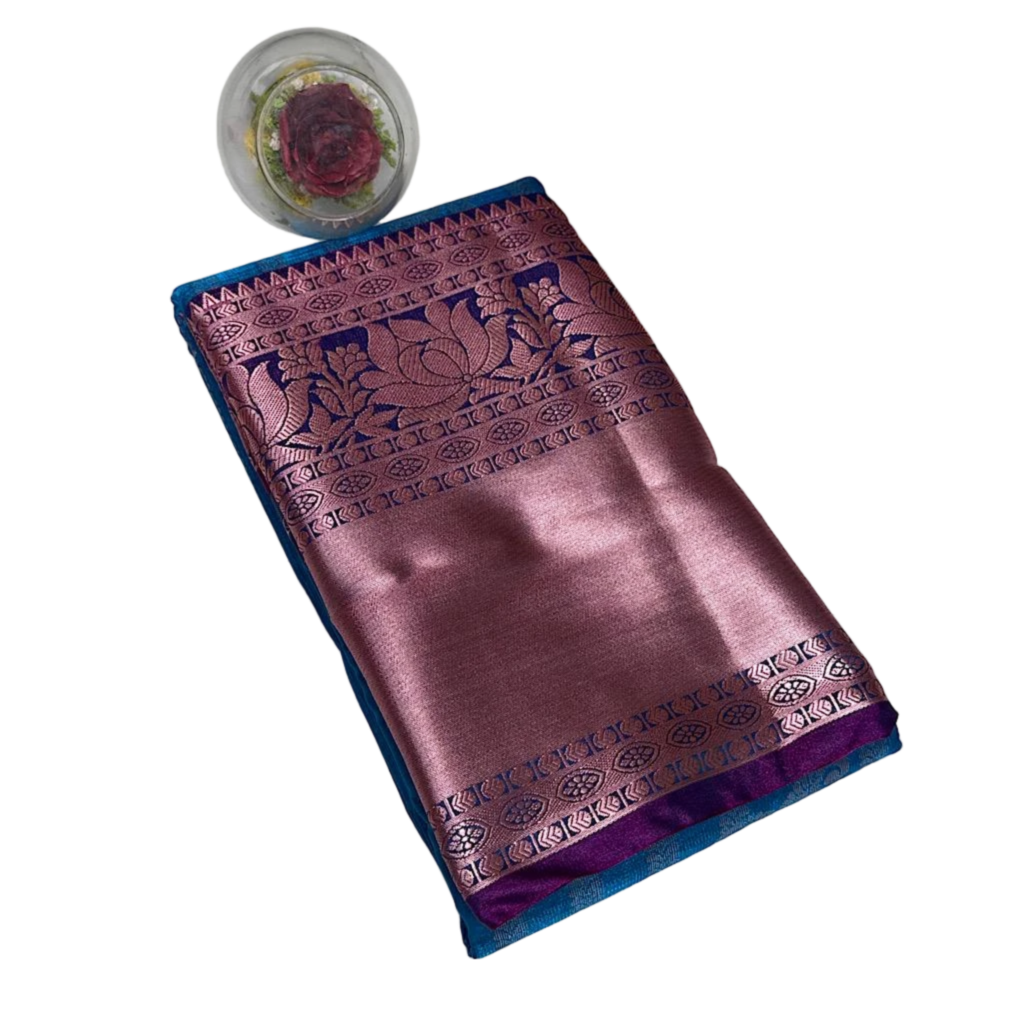 A stunning royal blue Pattu saree featuring an exquisite silver zari border and floral woven motifs. Paired with a matching blouse piece, this saree blends traditional craftsmanship with timeless elegance—perfect for festive celebrations, weddings, and special occasions. Saree Length 5.5 Mtrs and Blouse Piece 1cm.