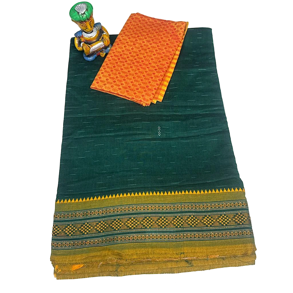 Samudra Rekha Teal blue Handloom Sambalpuri Cotton Saree.